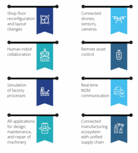 Manufacturing units can leverage private 5G to implement innovative use cases like robotics, AI, I-IoT, AR, and more. These technologies transform production processes so manufacturers can improve operational efficiency, minimize production downtime and delays, streamline supply chain management, ensure more efficient quality checks, and improve the safety of factory staff.